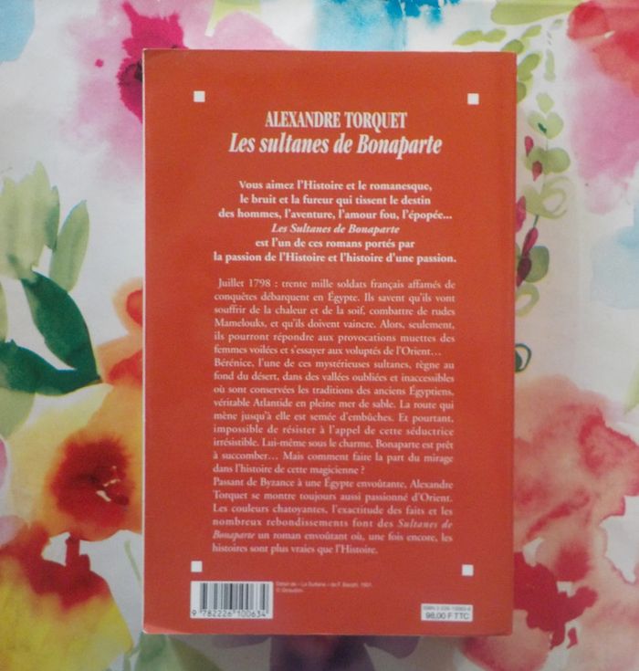 LES SULTANES DE BONAPARTE de Alexandre TORQUET Ed. Albin Michel Bon état Juillet 1798 : trente mille soldats français affamés de conquêtes débarquent en Égypte. Ils savent qu'ils vont souffrir de la chaleur et de la soif, combattre de rudes Mamelouks, et qu'ils doivent vaincre. Alors, seulement, ils pourront répondre aux provocations muettes des femmes voilées et s'essayer aux voluptés de l'Orient...Bérénice, l'une de ces mystérieuses sultanes, règne au fond du désert, dans des vallées oubliées et inaccessibles où sont conservées les traditions des anciens Égyptiens, véritable Atlantide en pleine mer de sable. La route qui mène jusqu'à elle est semée d'embûches. Et pourtant, impossible de résister à l'appel de cette séductrice irrésistible. Lui-même sous le charme, Bonaparte est prêt à succomber... Mais comment faire la part du mirage dans l'histoire de cette magicienne ?Passant de Byzance à une Égypte envoûtante, Alexandre Torquet se montre toujours aussi passionné d'Orient. Les couleurs chatoyantes, l'exactitude des faits et les nombreux rebondissements font des Sultanes de Bonaparte un roman envoûtant où, une fois encore, les histoires sont plus vraies que l'Histoire. #martinekrvromans