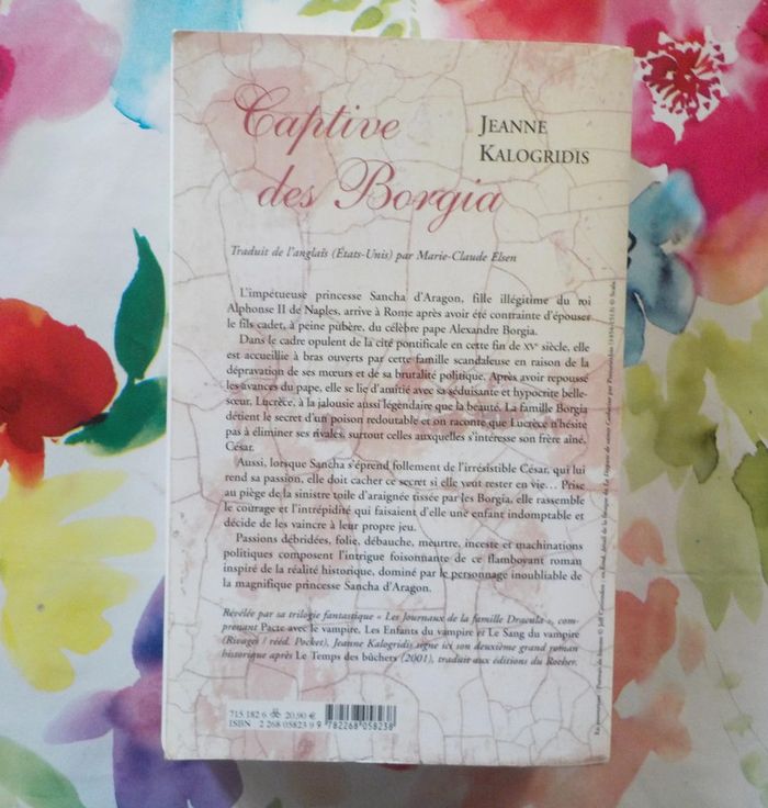 CAPTIVE DES BORGIA de Jeanne KALOGRIDIS Ed. du Rocher Bon état L'impétueuse princesse Sancha d'Aragon, fille illégitime du roi Alphonse II de Naples, arrive à Rome après avoir été contrainte d'épouser le fils cadet, à peine pubère, du célèbre pape Alexandre Borgia. Dans le cadre opulent de la cité pontificale en cette fin de XVè siècle, elle est accueillie à bras ouverts par cette famille scandaleuse en raison de la dépravation de ses moeurs et de sa brutalité politique. Après avoir repoussé les avances du pape, elle se lie d'amitié avec sa séduisante et hypocrite belle-soeur, Lucrèce, à la jalousie aussi légendaire que la beauté. La famille Borgia détient le secret d'un poison redoutable et on raconte que Lucrèce n'hésite pas à éliminer ses rivales surtout celles auxquelles s'intéresse son frère aîné, César. Aussi, lorsque Sancha s'éprend follement de l'irrésistible César, qui lui rend sa passion, elle doit cacher ce secret si elle veut rester en vie... Prise au piège de la sinistre toile d'araignée tissée par les Borgia, elle rassemble le courage et l'intrépidité qui faisaient d'elle une enfant indomptable et décide de les vaincre à leur propre jeu. Passions débridées, folie, débauche, meurtre, inc*ste et machinations politiques composent l'intrigue foisonnante de ce flamboyant roman. Inspiré de la réalité historique, dominé par le personnage inoubliable de la magnifique princesse Sancha d'Aragon. #martinekrvromans