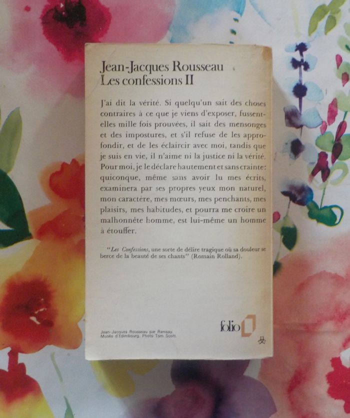 LES CONFESSIONS Tome II de Jean-Jacques ROUSSEAU Edition Folio 1973 Bon état, pages très jaunies, couverture un peu défraîchie J'ai dit la vérité. Si quelqu'un sait des choses contraires à ce que je viens d'exposer, fussent-elles mille fois prouvées, il sait des mensonges et des impostures, et s'il refuse de les approfondir, et de les éclaircir avec moi, tandis que je suis en vie, il n'aime ni la justice ni la vérité. Pour moi, je le déclare hautement et sans crainte : quiconque, même sans avoir lu mes écrits, examinera par ses propres yeux mon naturel, mon caractère, mes mœurs, mes penchants, mes plaisirs, mes habitudes, et pourra me croire un malhonnête homme, est lui-même un homme à étouffer. #martinekrvromans
