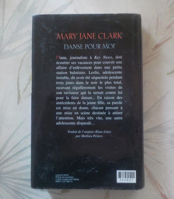DANSE POUR MOI de Mary Jane CLARK Editions France Loisirs Bon Etat Diane, journaliste à Key News, doit écourter ses vacances pour couvrir une affaire d'enlèvement dans une petite station balnéaire. Leslie, adolescente instable, dit avoir été séquestrée pendant trois jours dans le noir le plus total, recevant régulièrement les visites de son ravisseur qui la serrait contre lui pour la faire danser... En raison des antécédents de la jeune fille, sa parole est mise en doute, chacun pensant à une mise en scène destinée à attirer l'attention. Mais très vite, une autre adolescente disparaît... Productrice au bureau new-yorkais de la chaîne d'information CBS News, Mary Jane Clark aime placer ses intrigues policières dans le milieu de la télévision, et son talent en matière de suspense n'a rien à envier à celui de sa célèbre belle-mère, Mary Higgins Clark ! #martinekrvthrillers #martinekrvthrillersmaryjaneclark