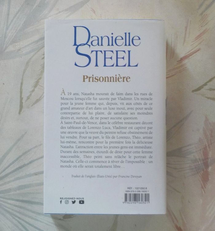 PRISONNIERE de Danielle STEEL Editions Presse de la cité bon état A 19 ans, Natasha mourait de faim dans les rues de Moscou lorsqu'elle fut sauvée par Vladimir. Un miracle pour la jeune femme qui, depuis, vit aux côtés de ce grand amateur d'art dans un luxe inouï, avec pour seule contrepartie de lui plaire, de satisfaire ses moindres désirs, et, surtout, de ne poser aucune question. A Saint-Paul-de-Vence, dans le célèbre restaurant décoré des tableaux de Lorenzo Luca, Vladimir est captivé par une oeuvre que la veuve du peintre refuse obstinément de lui vendre. Pour sa part, le fils de Lorenzo, Théo, artiste lui-même, rencontre pour la première fois la délicieuse Natasha. L'attraction entre les jeunes gens est immédiate. Durant des semaines, étourdi de désir pour cette femme inaccessible, Théo peint sans relâche le portrait de Natasha. Celle-ci commence à rêver de l'impossible : un monde où elle serait totalement libre... #martinekrvromans #martinekrvromanssteel