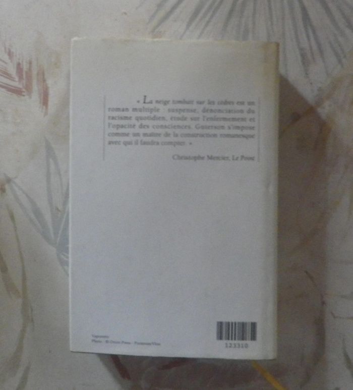 LA NEIGE TOMBAIT SUR LES CÈDRES de David GUTERSON Ed. France Loisirs Bon état - un nom au stylo en page intérieure Décembre 1954. Au nord-ouest des États-Unis, l'île de San Piedro est le théâtre d'une tempête sans précédent : un jeune Américain, d'origine japonaise, accusé de meurtre, est traduit devant le tribunal de cette petite communauté de pêcheurs et de fermiers, alors qu'un blizzard s'abat sur l'île pendant trois jours. Mais le procès est aussi l'occasion de revivre les souvenirs de la guerre du Pacifique et des camps où furent internés les Nippo-Américains après Pearl Harbor. Le journaliste Ishmael Cambers entame, lui, une longue plongée dans son passé : son premier et son unique amour pour Hatsue - la femme de celui que l'on juge aujourd'hui -, la guerre où il a perdu un bras et s'est perdu lui-même. Ce roman de l'enfermement et de la désillusion, mais aussi de la survie et de l'espoir, illustre l'incommunicabilité des consciences et le repli sur soi de l'homme solitaire. Tout au long d'un récit savamment éclaté, l'auteur nous convie à une passionnante analyse : analyse d'un microcosme avec ses passions, ses préjugés, son racisme ordinaire ; analyse d'un procès criminel, où les ambiguïstés de la justice humaine sont aussi insondables que le coeur et l'esprit de ceux qui la rendent... #martinekrvromans