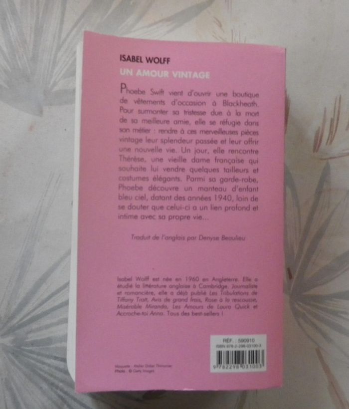 UN AMOUR VINTAGE de Isabel WOLFF Ed. Piment Bon état Phoebe Swift vient d'ouvrir une boutique de vêtements d'occasion à Blackheath. Pour surmonter sa tristesse due à la mort de sa meilleure amie, elle se réfugie dans son métier : rendre à ces merveilleuses pièces vintage leur splendeur passée et leur offrir une nouvelle vie. Un jour, elle rencontre Thérèse, une vieille dame française qui souhaite lui vendre quelques tailleurs et costumes élégants. Parmi sa garde-robe, Phoebe découvre un manteau d'enfant bleu ciel, datant des années 1940, loin de se douter que celui-ci a un lien profond et intime avec sa propre vie... #martinekrvromans #martinekrvpiment