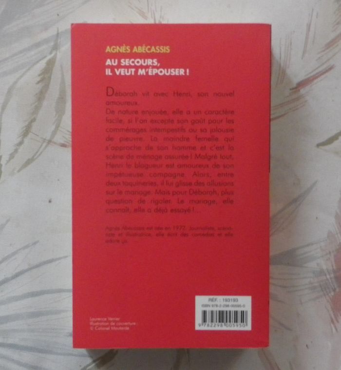 AU SECOURS, IL VEUT M'EPOUSER ! de Agnès ABECASSIS Ed. Piment Très bon état Déborah vit avec Henri, son nouvel amoureux. De nature enjouée, elle a un caractère facile, si l'on excepte son goût pour les commérages intempestifs ou sa jalousie de pieuvre. La moindre femelle qui s'approche de son homme et c'est la scène de ménage assurée ! Malgré tout, Henri le blagueur est amoureux de son impétueuse compagne. Alors, entre deux taquineries, il lui glisse des allusions sur le mariage. Mais pour Déborah, plus question de rigoler. Le mariage, elle connaît, elle a déjà essayé ! #martinekrvromans #martinekrvpiment