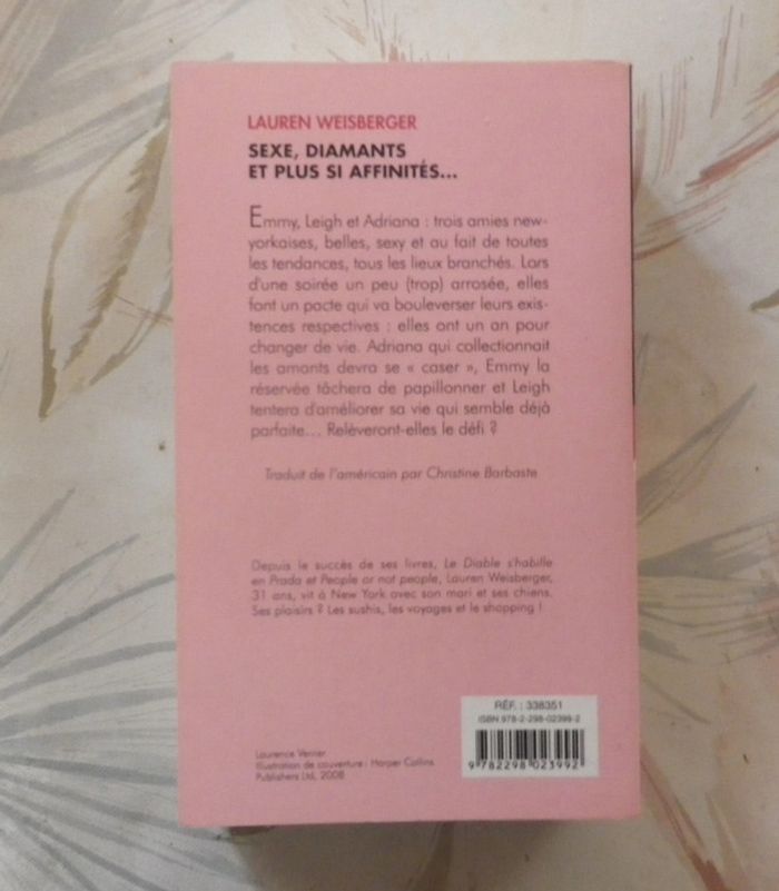 SE*E, DIAMANTS ET PLUS SI AFFINITES de Lauren WEISBERGER Ed. Piment Bon état Emmy, Leigh et Adriana : trois amies new-yorkaises, belles, sexy et au fait de toutes les tendances, tous les lieux branchés. Lors d'une soirée un peu (trop) arrosée, elle font un pacte qui va bouleverser leurs existences respectives : elles ont un an pour changer de vie. Adriana qui collectionnait les amants devra se "caser", Emmy la réservée tâchera de papillonner et Leigh tentera d'améliorer sa vie qui semble déjà parfaite... Relèveront-elles le défi ? #martinekrvromans #martinekrvpiment