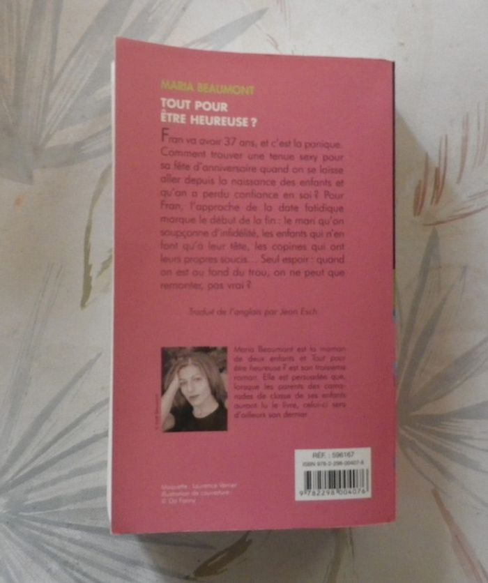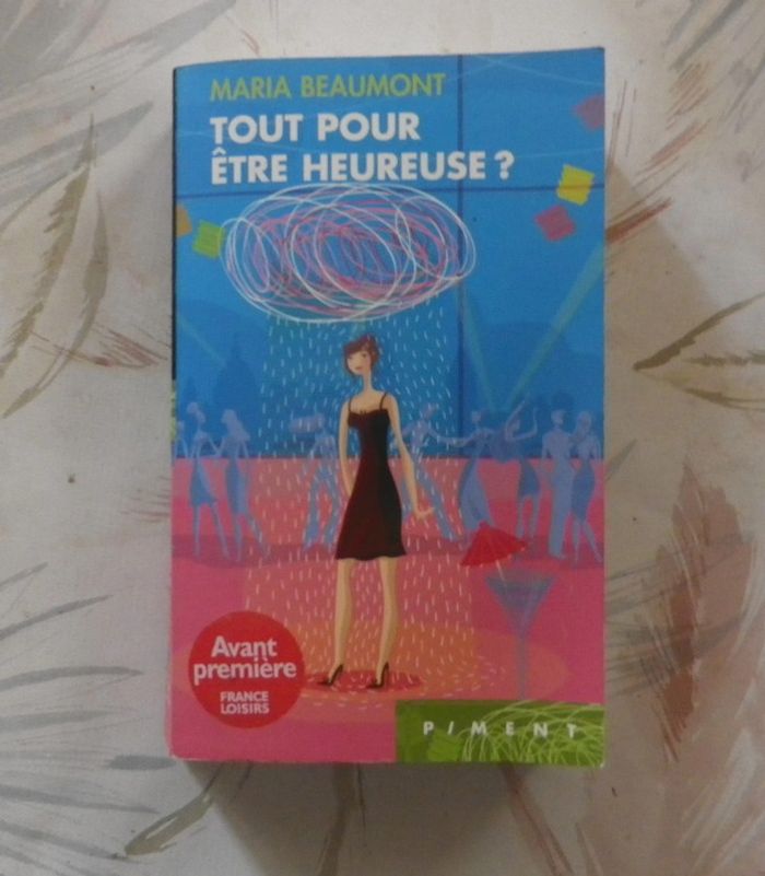 TOUT POUR ÊTRE HEUREUSE ? de Maria BEAUMONT Ed. Piment Bon état Fran va avoir 37 ans, et c'est la panique. Comment trouver une tenue sexy pour sa fête d'anniversaire quand on se laisse aller depuis la naissance des enfants et qu'on a perdu confiance en soi ? Pour Fran, l'approche de la date fatidique marque le début de la fin : le mari qu'on soupçonne d'infidélité, les enfants qui n'en font qu'à leur tête, les copines qui ont leurs propres soucis... Seul espoir : quand on est au fond du trou, on ne peut que remonter, pas vrai ? #martinekrvromans #martinekrvpiment