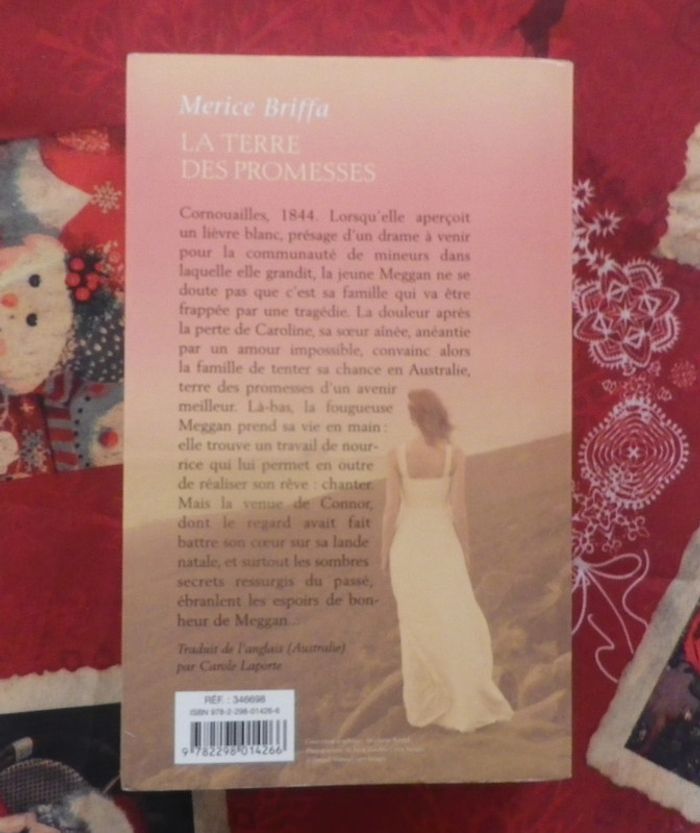 LA TERRE DES PROMESSES de Merice BRIFFA Editions France Loisirs Bon état Cornouailles, 1844. Lorsqu'elle aperçoit un lièvre blanc, présage d'un drame à venir pour la communauté de mineurs dans laquelle elle grandit, la jeune Meggan ne se doute pas que c'est sa famille qui va être frappée par une tragédie. La douleur après la perte de Caroline, sa soeur aînée, anéantie par un amour impossible, convainc alors la famille de tenter sa chance en Australie, terre des promesses d'un avenir meilleur. Là-bas, la fougueuse Meggan prend sa vie en main : elle trouve un travail de nourrice qui lui permet en outre de réaliser son rêve : chanter. Mais la venue de Connor, dont le regard avait fait battre son coeur sur sa lande natale, et surtout les sombres secrets ressurgis du passé, ébranlent les espoir de bonheur de Meggan... #martinekrvromans