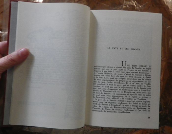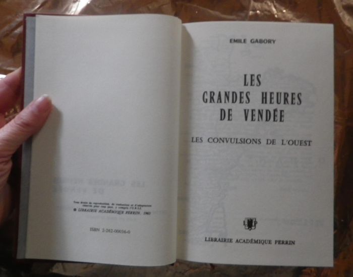 LES GRANDES HEURES DE VENDEE par Emile GABORY Librairie Académique Perrin 1983 Très bon état Reliure rouge sous rhodoïd La Vendée est célèbre dans l'Histoire de France pour les Guerres de Vendée durant la Révolution. Elle vit en effet s'affronter paysans insurgés (les Blancs) et armées révolutionnaires (les Bleus) pendant plusieurs années, en un conflit qui fut la cause de centaines de milliers de morts et qui marqua durablement l'imaginaire vendéen. Il faut toutefois dissocier pour partie le territoire de la Vendée militaire qui s'étend dans les bocages (cf. Massif armoricain) du Sud de la Loire (Sud de la Bretagne, Sud de l'Anjou et un grand quart Nord-Ouest du Poitou avec Cholet pour épicentre), du département de la Vendée basé et conçu à partir du Bas-Poitou. Il faut aussi dissocier les Vendéens des Chouans, la Chouannerie étant au Nord de la Loire. #martinekrvhistoiremilitaria