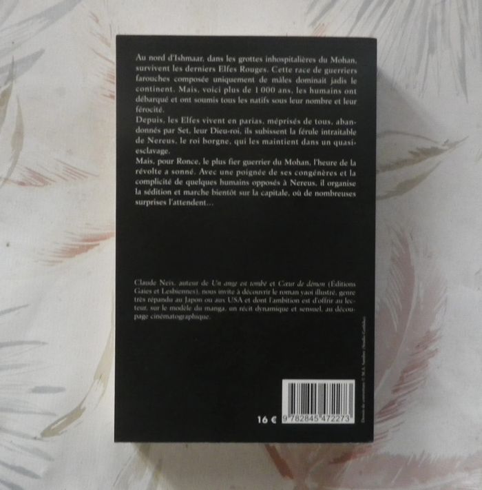 L'ELFE ROUGE de Claude NEIX Ed. H&O Roman Yaoi Très bon état - comme neuf Au nord d'Ishmaar, dans les grottes inhospitalières du Mohan, survivent les derniers Elfes Rouges. Cette race de guerriers farouches composée uniquement de mâles dominait jadis le continent. Mais, voici plus de 1000 ans, les humains ont débarqué et ont soumis tous les natifs sous leur nombre et leur férocité. Depuis, les Elfes vivent en parias, méprisés de tous, abandonnés par Set, leur Dieu-roi, ils subissent la férule intraitable de Nereus, le roi borgne, qui les maintient dans un quasi-esclavage. Mais, pour Ronce, le plus fier guerrier du Mohan, l'heure de la révolte a sonné. Avec une poignée de ses congénères et la complicité de quelques humains opposés à Nereus, il organise la sédition et marche bientôt sur la capitale, où de nombreuses surprises l'attendent... #martinekrvsfetfantastique #martinekrvlelferouge