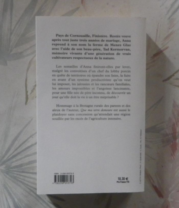 QUE MA TERRE DEMEURE de Hervé JAOUEN Ed. Presses de la Cité Bon état Pays de Cornouaille, Finistère. Restée veuve après tout juste trois années de mariage, Anna reprend à son nom la ferme de Menez Glaz avec l'aide de son beau-père, Tad Kermovan, mémoire vivante d'une génération de vrais cultivateurs respectueux de la nature. Les semailles d'Anna finiront-elles par lever, malgré les convoitises d'un chef du lobby porcin en quête de territoires où épandre son lisier, la fuite en avant d'un système productiviste qu'on veut lui imposer, les jalousies et les rancoeurs familiales, les amours impossibles et l'angoisse lancinante, pour une fille née de père inconnu, de découvrir un jour qu'elle doit la vie à un être méprisable ? Hommage à la Bretagne rurale des parents et des aïeux de l'auteur, "Que ma terre demeure" est aussi le plaidoyer sans concession qu'attendait une région souillée par les excès de l'agriculture intensive. #martinekrvromans