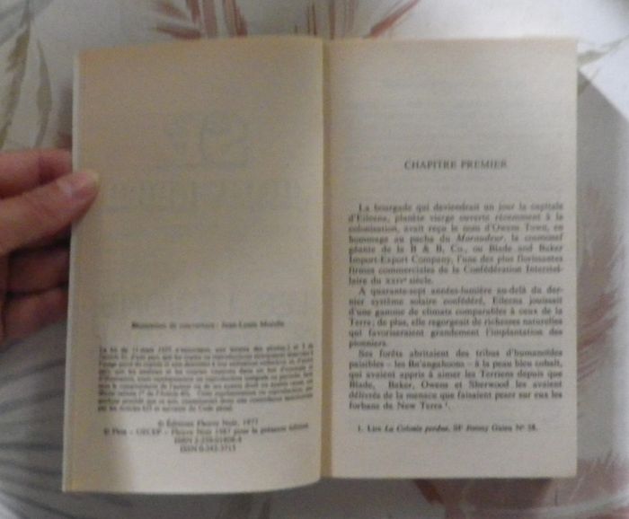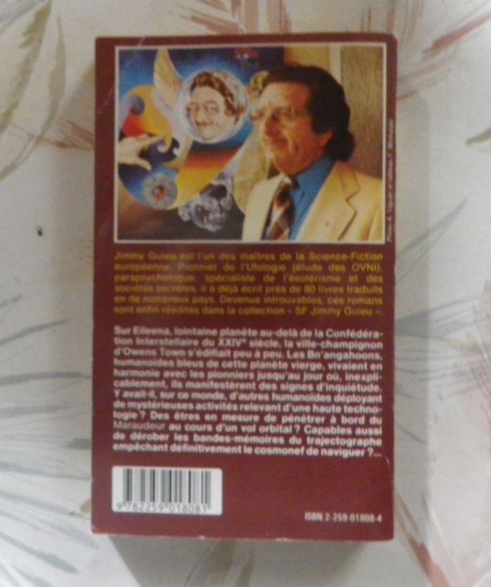LES LEGIONS DE BARTZOUK de Jimmy GUIEU N°62 Ed. Plon Bon état Sur Eileena, lointaine planète au-delà de la Confédération Interstellaire du XXIVe siècle, la ville-champignon d'Owens Town s'édifiait peu à peu. Les Bn'angahoons, humanoïdes bleus de cette planète vierge, vivaient en harmonie avec les pionniers jusqu'au jour où, inexplicablement, ils manifestèrent des signes d'inquiétude. Y avait-il, sur ce monde, d'autres humanoïdes déployant de mystérieuses activités relevant d'une haute technologie ? Des êtres en mesure de pénétrer à bord du Maraudeur au cours d'un vol orbital ? Capables aussi de dérober les bandes-mémoires du trajectographe empêchant définitivement le cosmonef de naviguer ?... #martinekrvsfetfantastique #martinekrvjimmyguieu