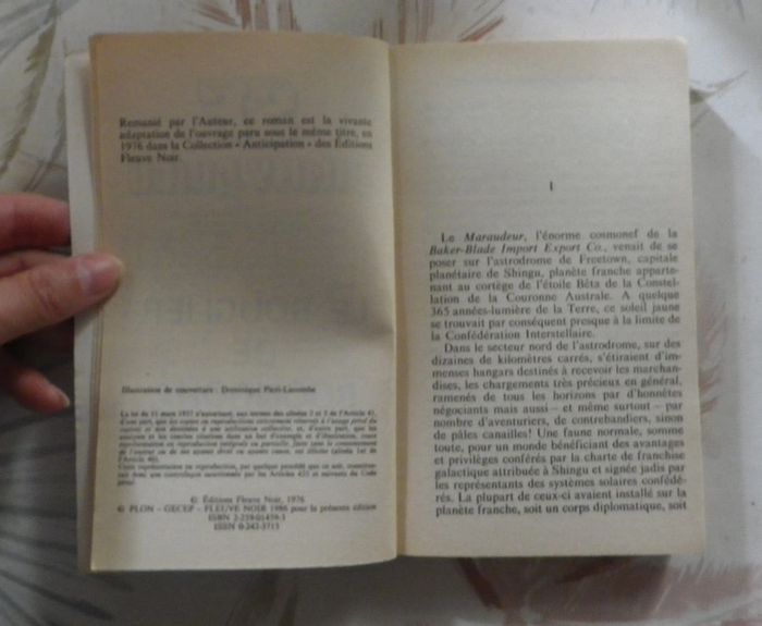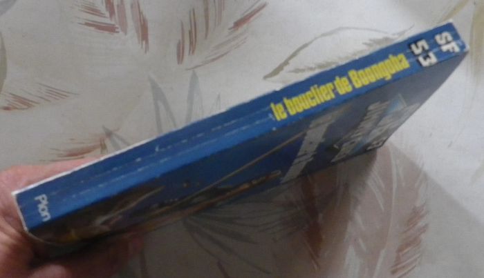 LE BOUCLIER DE BOONGOHA de Jimmy GUIEU n°53 Ed. Plon Très bon état Shingu, planète franche où les autorités ne regardent pas de très près ce que les astronefs de la Confédération ramènent parfois des systèmes solaires encore inexplorés. Kalinski, antiquaire et receleur à l'occasion, n'avait rien demandé quant à la provenance de ce splendide bouclier et de cette flèche. Fasciné par ces pièces uniques, Ronny Blade s'en rendit acquéreur. Et la plus incroyable des aventures commença pour lui et ses amis partis à bord du Maraudeur à destination d'une planète inconnue... Un fabuleux destin attendait là-bas une humble passagère de leur vaisseau... #martinekrvsfetfantastique