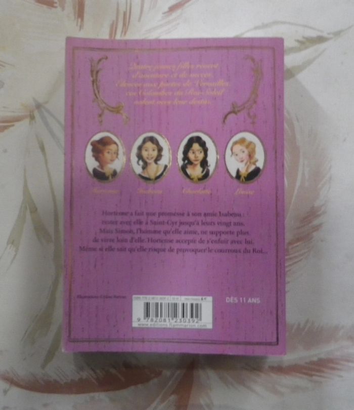 LES COLOMBES DU ROI-SOLEIL n°04 LA PROMESSE D'HORTENSE de Anne-Marie DESPLAT-DUC Ed. Flammarion Très bon état Quatre jeunes filles rêvent d'aventure et de succès. Elevées aux portes de Versailles, ces Colombes du Roi-Soleil volent vers leur destin. Hortense a fait une promesse à son amie Isabeau : rester avec elle à Saint-Cyr jusqu'à leurs vingt ans. Mais Simon, l'homme qu'elle aime, ne supporte plus de vivre loin d'elle. Hortense accepte de s'enfuir avec lui. Même si elle sait qu'elle risque de provoquer le courroux du Roi... #martinekrvlivresenfants