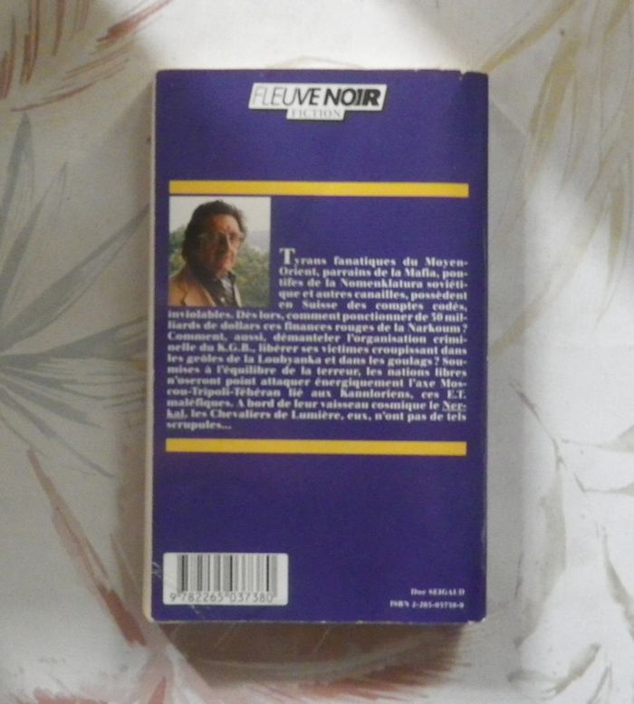 NARKOUM : FINANCES ROUGES Tome IV LES CHEVALIERS DE LUMIERE de Jimmy GUIEU N°4 Fiction Fleuve Noir Bon état Tyrans fanatiques du Moyen-Orient, parrains de la Mafia, pontifes de la Nomenklatura soviétique et autres canailles, possèdent en Suisse des comptes codés, inviolables. Dès lors, comment ponctionner de 50 milliards de dollars ces finances rouges de la Narkoum ? Comment, aussi, démanteler l'organisation criminelle du K.G.B., libérer ses victimes croupissant dans les geôles de la Loubyanka et dans les goulags ? Soumises à l'équilibre de la terreur, les nations libres n'oseront point attaquer énergiquement l'axe Moscou-Tripoli-Téhéran lié aux Kannloriens, ces E.T. maléfiques. A bord de leur vaisseur cosmique le Nerkal, les Chevaliers de Lumière, eux, n'ont pas de tels scrupules... PLUS DE 50 JIMMY GUIEU EN VENTE DANS MA BOUTIQUE #martinekrvsfetfantastique