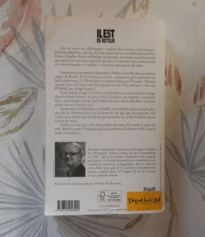 IL EST DE RETOUR de Timur WERMES Ed. Belfond Bon état Soixante-six ans après sa disparition, Hitl*r se réveille dans un terrain vague de Berlin. Et il n'est pas content : comment, plus personne ne fait le salut n*zi ? L'Allemagne ne rayonne plus sur l'Europe ? Depuis quand tous ces Turcs ont-ils pignon sur rue ? Et, surtout, c'est une FEMME qui dirige le pays ? Il est temps d'agir. Le Fü*rer est de retour et va remettre le pays dans le droit chemin. Et pour cela, il lui faut une tribune. Ca tombe bien, une équipe de télé, par l'odeur du bon client alléchée, est toute prête à lui en fournir une. La machine médiatique s'emballe, et bientôt le pays ne parle plus que de ça. Pensez-vous, cet homme ne dit pas que des âneries ! En voilà un au moins qui ne mâche pas ses mots. Et ça fait du bien, en ces temps de crise... Hitl*r est ravi, qui n'en demandait pas tant. Il le sent, le pays est prêt. Reste à porter l'estocade qui lui permettra d'achever enfin ce qu'il avait commencé... #martinekrvromans