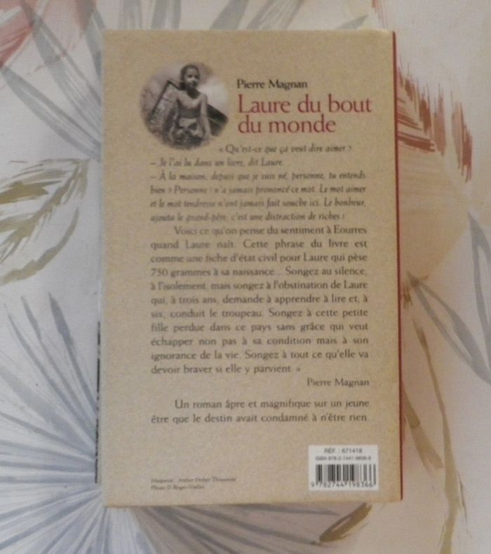 LAURE DU BOUT DU MONDE de Pierre MAGNAN Ed. France Loisirs Très bon état "Qu'est-ce que ça veut dire aimer ? - Je l'ai lu dans un livre, dit Laure. - A la maison, depuis que je suis né, personne, tu entends bien ? Personne ! n'a jamais prononcé ce mot. Le mot aimer et le mot tendresse n'ont jamais fait souche ici. Le bonheur, ajouta le grand-père, c'est une distraction de riches ! Voici ce qu'on pense du sentiment à Eourres quand Laure naît. Cette phrase du livre est comme une fiche d'état civil pour Laure qui pèse 750 grammes à sa naissance... Songez au silence, à l'isolement, mais songez à l'obstination de Laure qui, à trois ans, demande à apprendre à lire et, à six, à conduire le troupeau. Songez à cette petite fille perdue dans ce pays sans grâce qui veut échapper non pas à sa condition mais à son ignorance de la vie. Songez à tout ce qu'elle va devoir braver si elle y parvient." Pierre Magnan Un roman âpre et magnifique sur un jeune être que le destin avait condamné à n'être rien. #martinekrvromans
