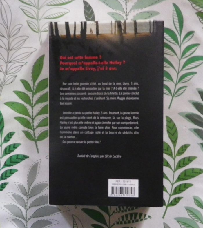 UNE MER SI FROIDE de Linda HUBER Ed. France Loisirs Bon état Qui est cette femme ? Pourquoi m'appelle-t-on Hailey ? Je m'appelle Livvy, j'ai 3 ans. Par une belle journée d'été, au bord de la mer, Livvy, 3 ans, disparaît. A-t-elle été emportée par la mer ? A-t-elle été enlevée ? Les semaines passent : aucune trace de la fillette. La police conclut à la noyade et les recherches s'arrêtent. Sa mère Maggie abandonne tout espoir. Jennifer a perdu sa petite Hailey, 5 ans. Pourtant, la jeune femme est persuadée qu'elle vient de la retrouver, là, sur la plage. Mais Hailey n'est plus elle-même et agace Jennifer par son comportement. La jeune mère compte bien la faire plier. Pour commencer, elle l'emmène dans un cottage isolé et la bourre de sédatifs afin de la calmer... Qui pourra sauver la petite fille ? #martinekrvthrillers