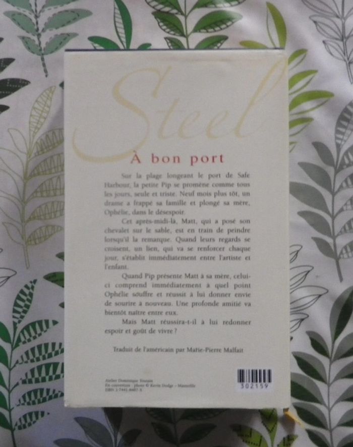 A BON PORT de Danielle STEEL Ed. France Loisirs Bon état - Haut de la tranche de la couverture papier un peu fripé Sur la plage longeant le port de Safe Harbour, la petite Pip se promèe comme tous les jours, seule et triste. Neuf mois plus tôt, un drame a frappé sa famille et plongé sa mère, Ophélie, dans le désespoir. Cet après-midi-là, Matt, qui a posé son chevalet sur le sable, est en train de peindre lorsqu'il la remarque. Quand leurs regards se croisent, un lien qui va se renforcer chaque jour, s'établit immédiatement entre l'artiste et l'enfant. Quand Pip présente Matt à sa mère, celui-ci comprend immédiatement à quel point Ophélie souffre et réussit à lui donner envie de sourire à nouveau. Une profonde amitié va bientôt naître entre eux. Mais Matt réussira-t-il à lui redonner espoir et goût de vivre ? #martinekrvromans #martinekrvromanssteel