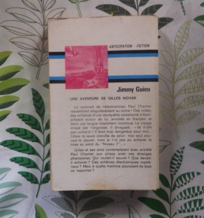LA VOIX QUI VENAIT D'AILLEURS Une aventure de Gilles Novak de Jimmy GUIEU N°459 Anticipation Fleuve Noir Bon état - pages jaunies - rousseurs Le sommeil de l'électronicien Paul Chartier ressemblait singulièrement au coma ! Des notes, des schémas d'une incroyable complexité s'éparpillaient autour de lui, annotés en français et dans une langue totalement inconnue. Le visage crispé par l'angoisse, il divaguait : "Ils n'ont pas compris ! C'était trop dangereux pour moi... J'étais ta seule planche de salut ; moi seul pouvais te sauver, mais je n'ai pas pu achever la mise au point du "Niveau 7"..." Gilles et ses amis contemplaient avec anxiété Paul Chartier aux prises avec ses étranges phantasmes. Qui voulait-il sauver ? Que devait-il achever ? Ces schémas électroniques mystérieux ? Mais à quelle machine pouvaient-ils bien se rapporter ? #martinekrvsfetfantastique