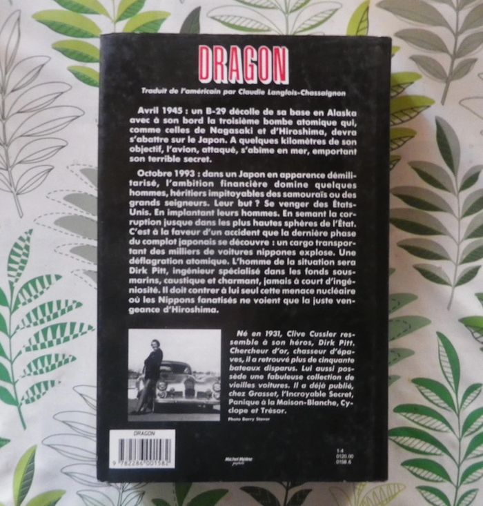 DRAGON Une nouvelle aventure de Dirk Pitt de Clive CUSSLER Ed. Club Express Bon état Avril 1945 : un B-29 décolle de sa base en Alaska avec à son bord la troisième bombe atomique qui, comme celles de Nagasaki et d'Hiroshima, devra s'abattre sur le Japon. A quelques kilomètres de son objectif, l'avion, attaqué, s'abîme en mer, emportant son terrible secret. Octobre 1993 : dans un Japon en apparence démilitarisé, l'ambition financière domine quelques hommes, héritiers impitoyables des samouraïs ou des grands seigneurs. Leur but ? Se venger des Etats-Unis. En implantant leurs hommes. En semant la corruption jusque dans les plus hautes sphères de l'Etat. C'est à la faveur d'un accident que la dernière phase du complot japonais se découvre : un cargo transportant des milliers de voitures nippones explose. Une déflagration atomique. L'homme de la situation sera Dirk Pitt, ingénieur spécialisé dans les fonds sous-marins, caustique et charmant, jamais à court d'ingéniosité. Il doit contrer à lui seul cette menace nucléaire où les Nippons fanatisés ne voient que la juste vengeance d'Hiroshima. #martinekrvromans