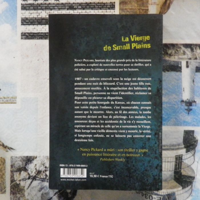 LA VIERGE DE SMALL PLAINS de Nancy PICKARD Ed. Michel Lafon Bon état 1987 : un cadavre enseveli sous la neige est découvert pendant une nuit de blizzard. C'est une jeune fille nue, atrocement mutilée. À la stupéfaction des habitants de Small Plains, personne ne vient l'identifier, réclamer sa dépouille ou pleurer sa disparition. Pour cette petite bourgade du Kansas, où chacun connaît son voisin depuis l'enfance, c'est inconcevable, presque autant que le meurtre. Alors, au fil des années, la tombe anonyme devient un lieu de pèlerinage. Les malades, les amoureux déçus et les accidentés de la vie s'y recueillent, espérant un miracle de celle qu'on a surnommée la Vierge. Mais lorsqu'une vieille démente vient y mourir, la vérité, si longtemps enfouie, ne se laissera pas enterrer une deuxième fois. #martinekrvthrillers