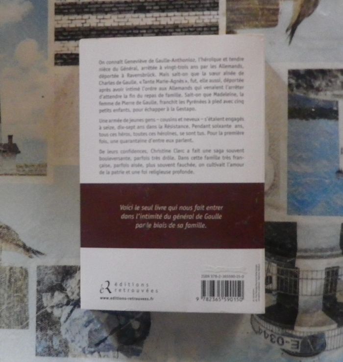 LES DE GAULLE Une famille française par Christine CLERC Les Editions Retrouvées Bon état, bas avant de la tranche fendu sur 2 cm On connaît Geneviève de Gaulle-Anthonioz, l'héroïque et tendre nièce du Général, arrêtée à vingt-trois ans par les Allemands, déportée à Ravensbrück. Mais sait-on que la sœur aînée de Charles de Gaulle, " Tante Marie-Agnès ", fut, elle aussi, déportée, après avoir intimé aux Allemands qui venaient l'arrêter l'ordre d'attendre la fin du repas de famille ? Sait-on que Madeleine, la femme de Pierre de Gaulle, franchit les Pyrénées à pied avec cinq petits enfants pour échapper à la Gestapo ? Une armée de jeunes gens - cousins et neveux - s'étaient engagés à seize, dix-sept ans, dans la Résistance. Pendant soixante ans, tous ces héros, toutes ces héroïnes, se sont tus. Pour la première fois, une quarantaine d'entre eux parlent. De leurs confidences, Christine Clerc a fait une saga souvent bouleversante, parfois très drôle. Dans cette famille très française, parfois aisée, plus souvent fauchée, on cultivait l'amour de la patrie et une foi religieuse profonde. Voici le seul livre qui nous fait entrer dans l'intimité du général de Gaulle par le biais de sa famille. #martinekrvbiographies