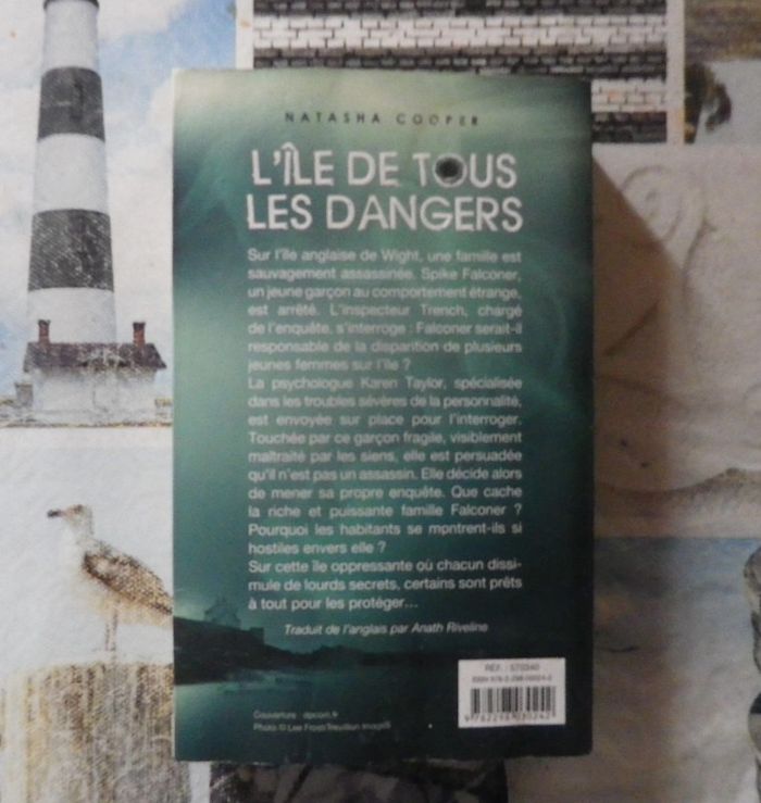 L'ILE DE TOUS LES DANGERS de Natasha COOPER Ed. France Loisirs Etat correct, les pages sur le dernier quart du livre sont gondolées Sur l'île anglaise de Wight, une famille est sauvagement assassinée. Spike Falconer, un jeune garçon au comportement étrange, est arrêté. L'inspecteur Trench, chargé de l'enquête s'interroge : Falconer serait-il responsable de la disparition de plusieurs jeunes femmes sur l'île ? La psychologue Karen Taylor, spécialisée dans les troubles sévères de la personnalité, est envoyée sur place pour l'interroger. Touchée par ce garçon fragile, visiblement maltraité par les siens, elle est persuadée qu'il n'est pas un assassin. Elle décide alors de mener sa propre enquête. Que cache la riche et puissante famille Falconer ? Pourquoi les habitants se montrent-ils si hostiles envers elle ? Sur cette iîle oppressante où chacun dissimule de lourds secrets, certains sont prêts à tout pour les protéger... #martinekrvthrillers