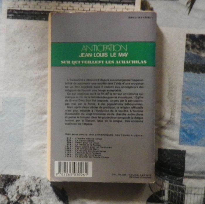 SUR QUI VEILLENT LES ACHACHILAS Chroniques des temps à venir de Jean-Louis LE MAY Ed. Fleuve Noir Anticipation 1407 Bon état L'humanité a démontré depuis son émergence l'impossibilité de maintenir une société sans l'aide d'une croyance en un être suprême dont il revient aux concepteurs des religions de fournir une image acceptable. Ce qui explique qu'à la fin de la terreur anti-blancs qui marqua la fin de la dernière des guerres atomiques, l'Eglise de Grand Dieu Bon fut imposée, un peu par la persuasion, pas mal par la force, à des populations déboussolées. Mais après deux siècles de pratique, la religion officielle n'est plus adaptée à l'évolution de la société. L'homme Rockandin du vingt-troisième siècle cherche autre chose et pense le trouver dans les protecteurs proposés à chaque instant par la Nature, issus de la longue, très ancienne tradition de l'espèce. #martinekrvsfetfantastique