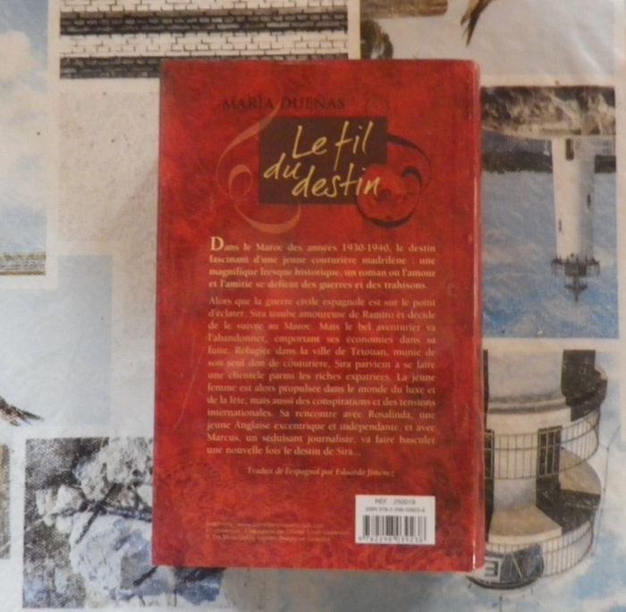 LE FIL DU DESTIN de Maria DUENAS Ed. France Loisirs Très bon état du livre SAUF que les rabats de la couverture papier présentent des marques de pliure et que le haut de la tranche de la couverture papier est un peu fripé Dans le Maroc des années 1930-1940, le destin fascinant d'une jeune couturière madrilène : une magnifique fresque historique, un roman où l'amour et l'amitié se défient des guerres et des trahisons. Alors que la guerre civile espagnole est sur le point d'éclater, Sira tombe amoureuse de Ramiro et décide de le suivre au Maroc. Mais le bel aventurier va l'abandonner, emportant ses économies dans sa fuite. Réfugiée dans la ville de Tétouan, munie de son seul don de couturière, Sira parvient à se faire une clientèle parmi les riches expatriées. La jeune femme est alors propulsée dans le monde du luxe et de la fête, mais aussi des conspirations et des tensions internationales. Sa rencontre avec Rosalinda, une jeune Anglaise excentrique e indépendante, et avec Marcus, un séduisant journaliste, va faire basculer une nouvelle fois le destin de Sira... #martinekrvromans