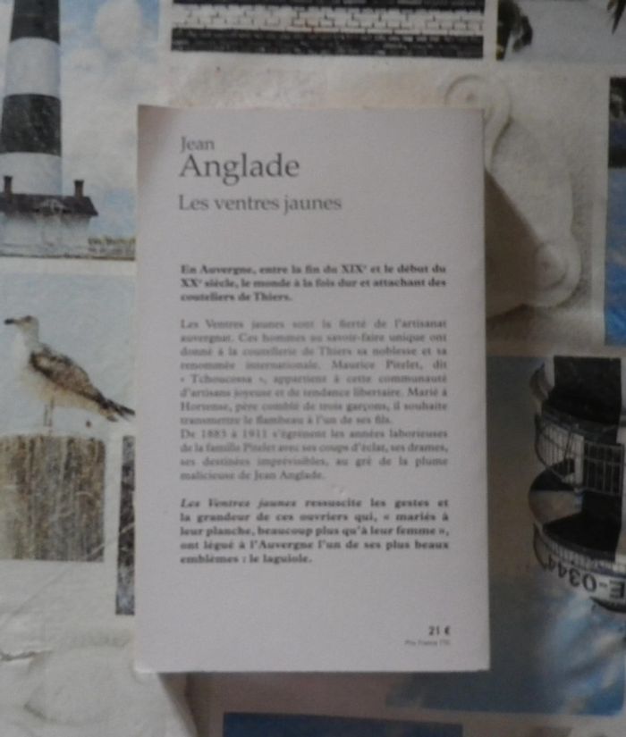 LES VENTRES JAUNES de Jean ANGLADE Ed. Presses de la Cité Bon état légères marques de pliure dans les angles supérieurs rousseurs En Auvergne, entre la fin du XIXè et le début du XXè siècle, le monde à la fois dur et attachant des couteliers de Thiers. Les Ventres jaunes sont la fierté de l'artisanat auvergnat. Ces hommes au savoir-faire unique ont donné à la coutellerie de Thiers sa noblesse et sa renommée internationale. Maurice Pitelet, dit "Tchoucossa", appartient à cette communauté d'artisans joyeuse et de tendance libertaire. Marié à Hortense, père comblé de trois garçons, il souhaite transmettre le flambeau à l'un de ses fils. De 1883 à 1911 s'égrènent les années laborieuses de la famille Pitelet avec ses coups d'éclat, ses drames, ses destinées imprévisibles, au gré de la plume malicieuse de Jean Anglade. "Les Ventres jaunes" ressuscite les gestes et la grandeur de ces ouvriers qui, "mariés à leur planche, beaucoup plus qu'à leur femme", ont légué à l'Auvergne l'un de ses plus beaux emblèmes : le laguiole. #martinekrvromans