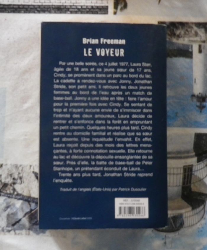 LE VOYEUR de Brian FREEMAN Ed. France Loisirs Etat correct, pages jaunies, un peu gondolées au début du livre, petite odeur d'humidité Par une belle soirée, ce 4 juillet 1977, Laura Starr, âgée de 18 ans et sa jeune soeur de 17 ans, Cindy, se promènent dans un parc au bord du lac. La cadette a rendez-vous avec Jonny, Jonathan Stride, son petit ami. Il retrouve les deux jeunes femmes au bord de l'eau après un match de base-ball. Jonny a une idée en tête : faire l'amour pour la première fois avec Cindy. Se sentant de trop et n'ayant aucune envie de s'immiscer dans l'intimité des deux amoureux, Laura décide de rentrer et s'enfonce dans la forêt en empruntant un petit chemin. Quelques heures plus tard, Cindy rentre au domicile familial et réalise que sa soeur est absente. Une inquiétude l'envahit. En effet, Laura reçoit depuis des mois des lettres menaçantes, à forte connotation sexuelle. Elle retourne au lac et découvre la dépouille ensanglantée de sa soeur. Près d'elle, la batte de base-ball de Peter Stanhope, un prétendant éconduit de Laura... Trente ans plus tard, Jonathan Stride reprend l'enquête. #martinekrvthrillers