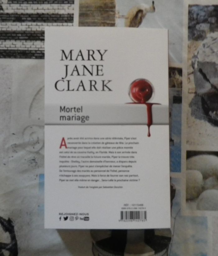 MORTEL MARIAGE de Mary JANE CLARK Ed. France Loisirs Très bon état Après avoir été actrice dans une série télévisée, Piper s'est reconvertie dans la création de gâteaux de fête. Le prochain mariage pour lequel elle doit réaliser une pièce montée est celui de sa cousine Kathy, en Floride. Mais à son arrivée dans l'hôtel de rêve où travaille la future mariée, Piper la trouve très inquiète : Shelley, l'autre demoiselle d'honneur, a disparu depuis plusieurs jours. Piper ne peut s'empêcher de mener l'enquête. De l'entourage des mariés au personnel de l'hôtel, personne n'échappe à ses soupçons. Mais à force de fourrer son nez partout, Piper se met elle-même en danger... Sera-t-elle la prochaine victime ? #martinekrvthrillers #martinekrvthrillersmaryjaneclark