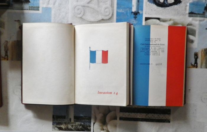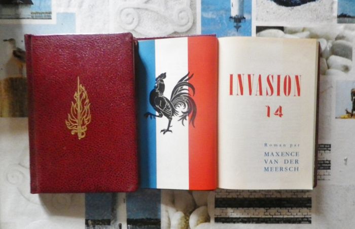 INVASION 14 (2 livres) de Maxence Van Der Meersch Club International du Livre 1951 Très bon état Edition de luxe imprimée en Belgique, reliure rigide en cuir rouge foncé, avec dessin et titre en dorure Tome 1 : édition numérotée ex. n° 1472/ 3000 Invasion 14 est un roman de Maxence Van der Meersch paru en 1935, qui manqua d'une voix le Prix Goncourt. Comme son nom l'indique, le roman retrace les années d'occupation allemande dans le Nord de la France pendant la Première Guerre mondiale. Saisissante fresque humaine et historique, Invasion 14 restitue un épisode méconnu de la Grande Guerre : l’occupation du nord de la France par l’Allemagne. Situé à Roubaix, au cœur de l’industrie textile, le roman nous plonge dans le quotidien d’une population aux prises avec le froid et la famine, acculée au travail forcé, à l’exode et à la mort par une armée allemande particulièrement féroce.