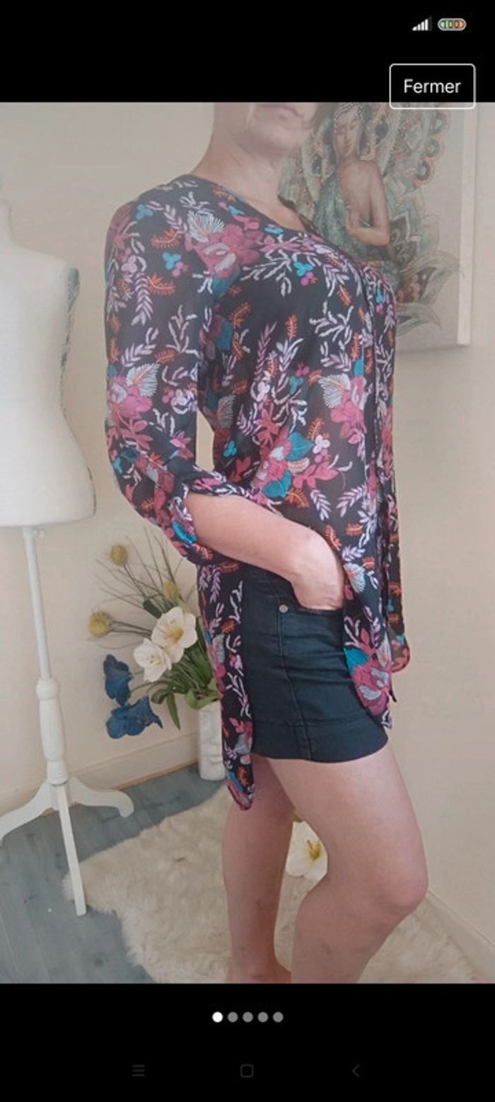Blouse longue transparente t 36 motifs fleuris - photo numéro 4