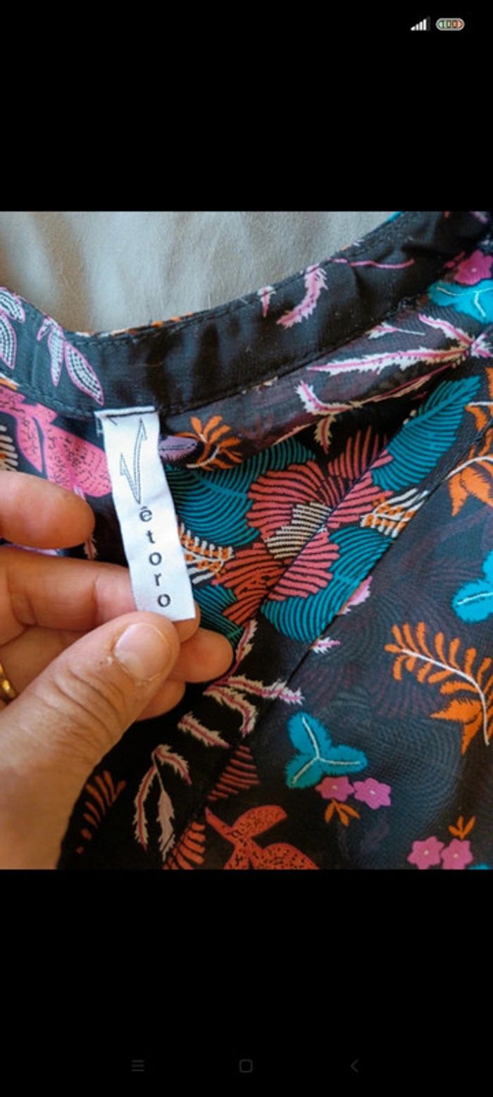 Blouse longue transparente t 36 motifs fleuris - photo numéro 2