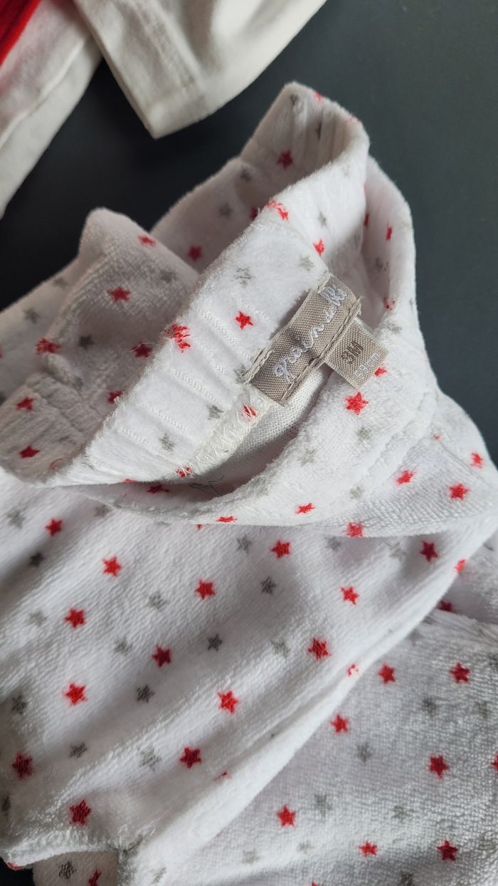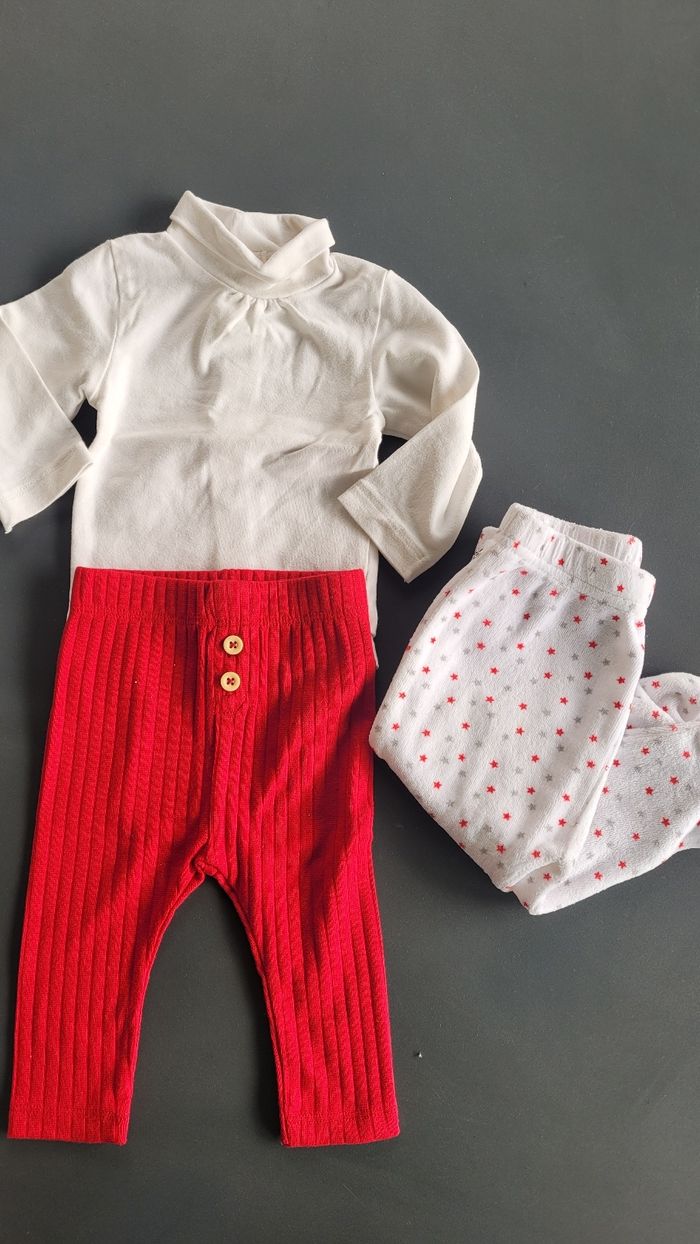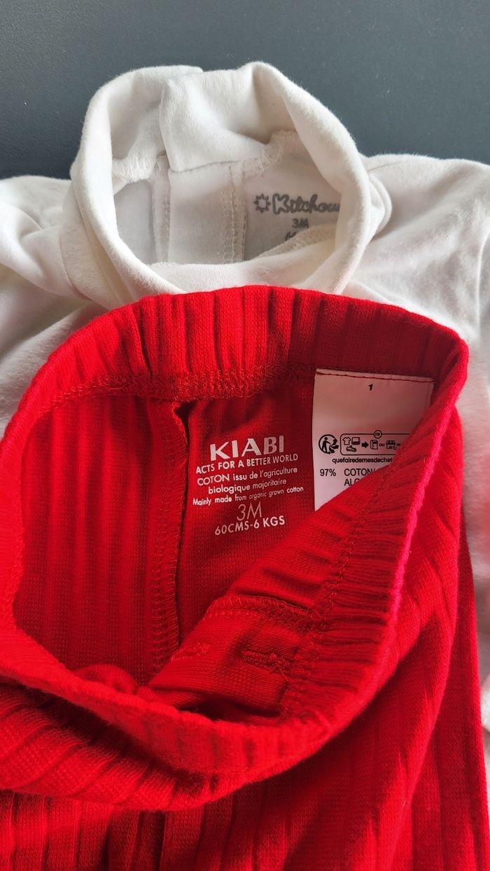 1 haut blanc uni à col montant 1 legging rouge 1 bas de pyjama 3mois
