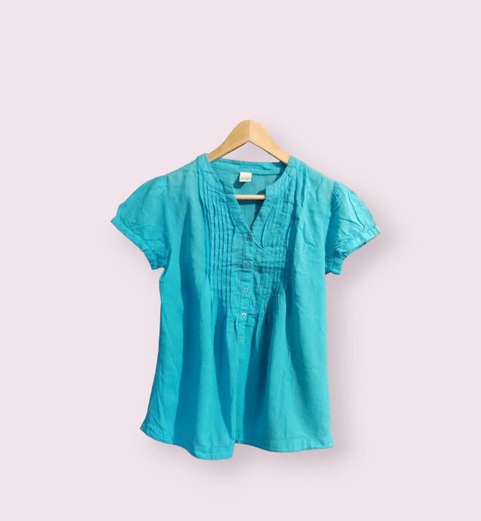 Tunique Camaïeu T36 bleu turquoise à manche courte, col V 100% coton Très bon état