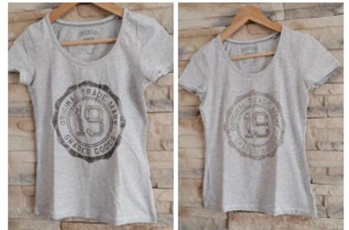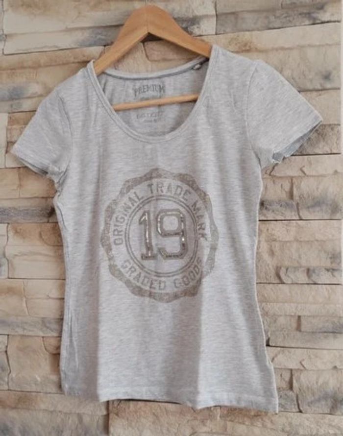 2 teeshirts ESMARA taille S : - gris et logo gris anthracite -gris beige logo beige