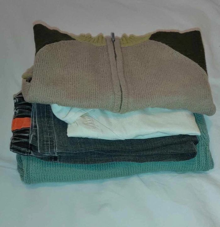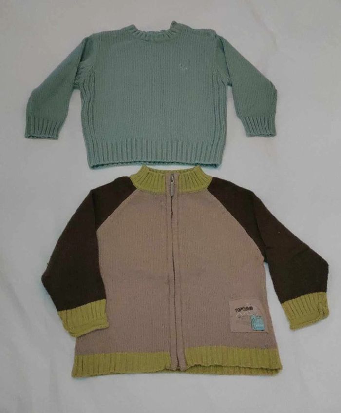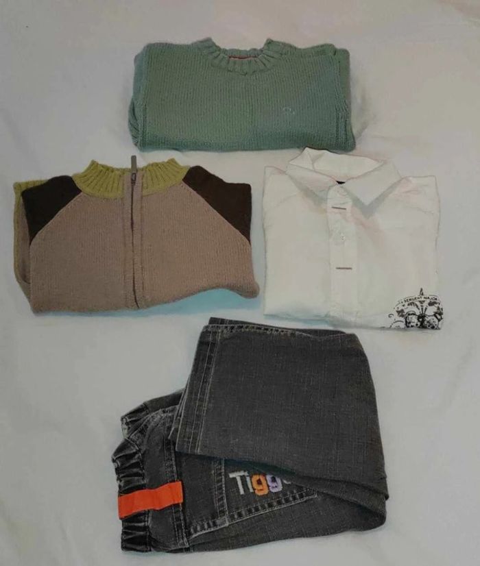Lot garçon 18 mois 4 pièces : -1 pull Okaidi -1 gilet 1 pantalon dysney Tigrou -1 chemise Sergent major écru