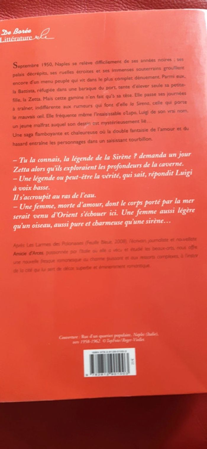 Septembre 1950, Naples se relève difficilement de ses années noires ; ses palais décrépis et ses immenses souterrains grouillent encore d'un petit peuple qui vit dans le plus complet dénuement. Parmi eux, la Battista, réfugiée dans une baraque sur le port, tente d'élever seule sa petite-fille, la Zetta. Mais cette gamine n'en fait qu'à sa tête. Elle passe ses journées à traîner, indifférente aux rumeurs qui font d'elle la Sirena, la fille de la sirène, qui porte le mauvais oil. Elle fréquenterait même O'Lupo, alias Luigi Marelli, « ce sauvage que tout le monde appelait le Loup parce qu'il était insaisissable, que sa tanière était introuvable et qu'on lui attribuait toutes les rapines revenues aux oreilles de la police ». Elle ne soupçonne même pas la vérité sur son identité que la Battista lui cache obstinément ni que sa destinée et celle de Luigi sont étroitement liées. Après Les Larmes des Polonaises, avec un art d'écrire que confirme cette deuxième saga, Amicie d'Arces nous offre ici un tissage dense et coloré, où se chevauchent les époques (près d'un demi-siècle avant, pendant et après la guerre), les destins tumultueux de personnages irrésistiblement attachants, et les palpitations bruyantes d'une ville qui se débat, vivante et sensuelle dans la tragédie, fi ère de ses beautés, même en ruine. Elle nous plonge dans le cour d'une ville aux multiples visages, de la bourgeoisie flamboyante des années 1920 aux enfants livrés à eux-mêmes après la guerre, en passant par les bandits en tout genre sur lesquels règne dans l'ombre la mafia toute puissante.