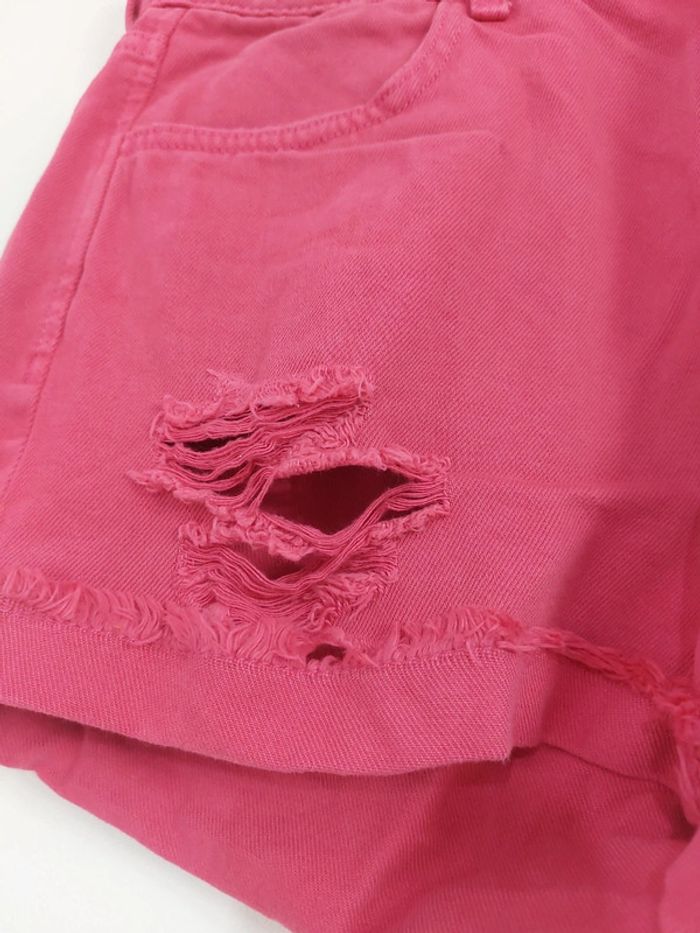 Joli mini short déchiré couleur framboise en très bon état ! Il a deux poches à l'avant et deux poches à l'arrière ! Longueur : 28 cm Largeur :39 cm #short #shortenjean #shortfemme #mini #été