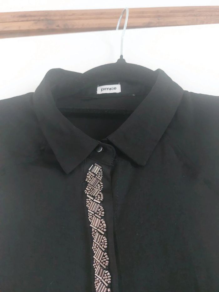 Magnifique haut noir Pimkie très élégant avec les perles cousues tout le long des boutons 😍 En parfait état, jamais porté ! Le haut est léger #stockholmstyle #minimalist #aesthetic #parisianstyle #neutralstyle #chic