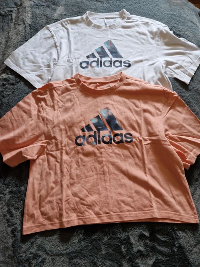 Lot de 2 t shirts adidas taille s 1 blanc et 1 corail