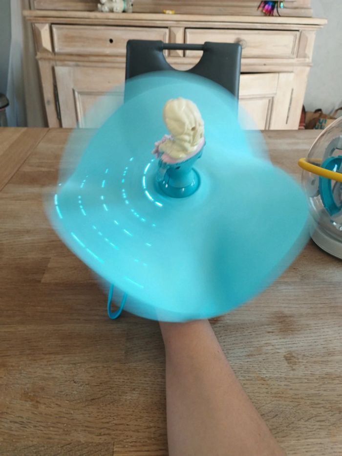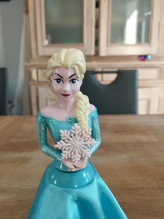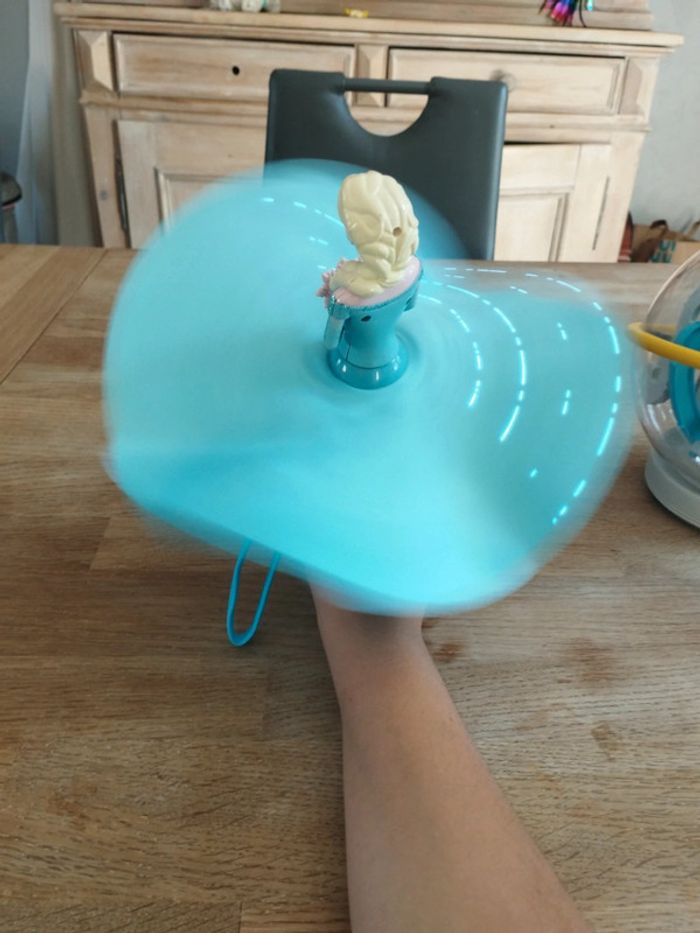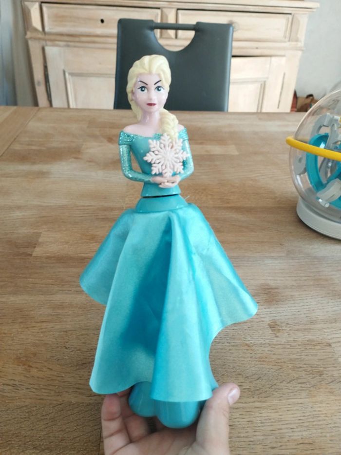 Figurine Elsa de la reine des neiges avec jupe qui tourne et s'illumine. Acheté à Disneyland Paris. Un fil tiré sur la jupe. En très bon état #valerie67115_jeux_jouets
