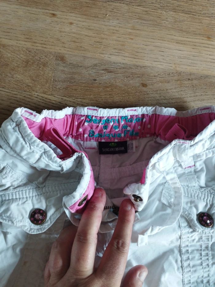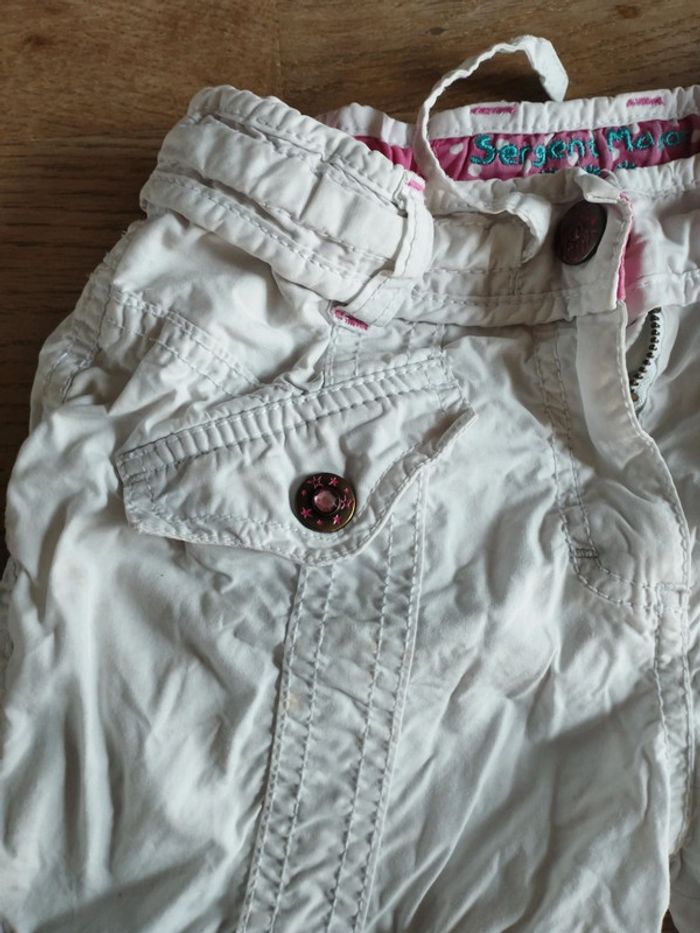 Pantacourt en toile blanc Sergent Major en très bon état. Ceinture réglable, boutons pression. Taille 6 ans, 116cm. #valerie67115_fille_6ans