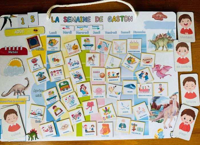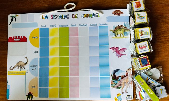 Le semainier est un outil pédagogique amusant qui permet aux enfants de se repérer dans le temps tout en développant leur sens de l'organisation, pratique et ludique pour les parents qui souhaitent encourager l'autonomie de leurs enfants en les aidant à gérer leur emploi du temps.