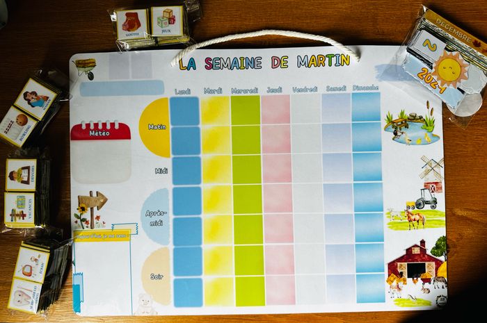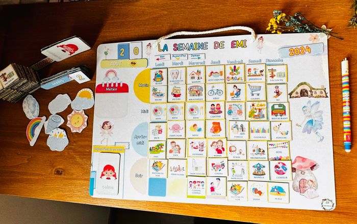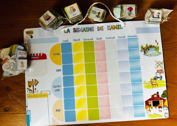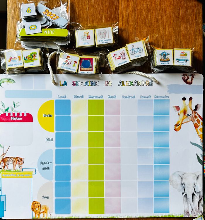 Offrez à vos enfants un outil pédagogique personnalisé pour les aider à organiser leur semaine de manière amusante et interactive.