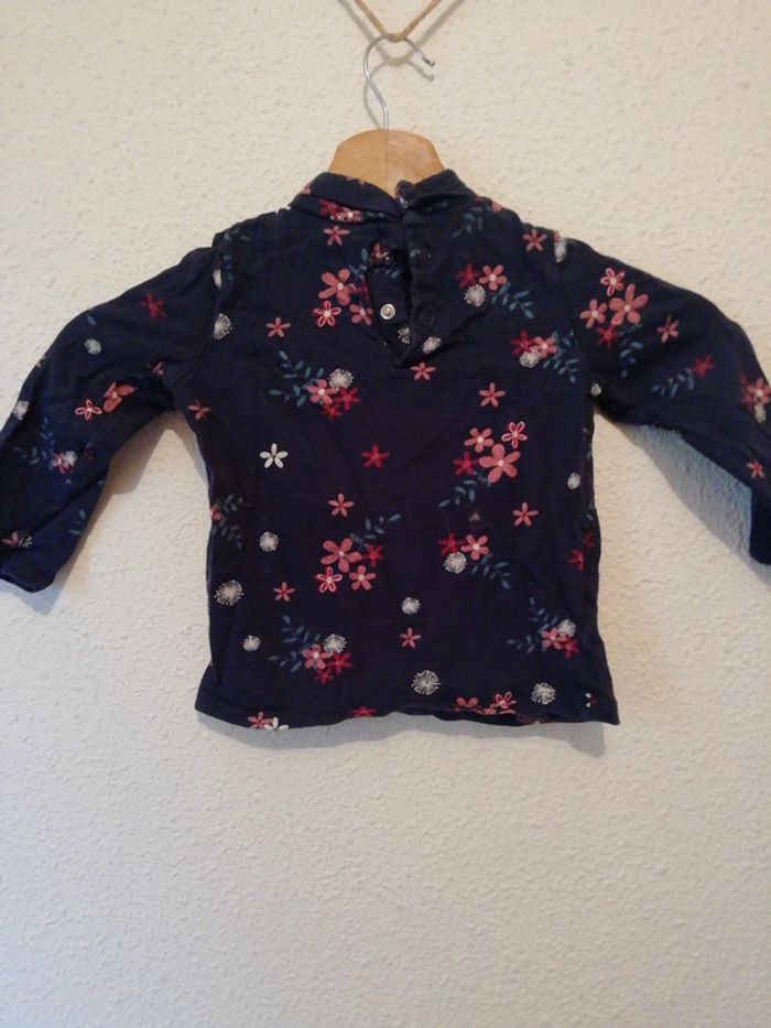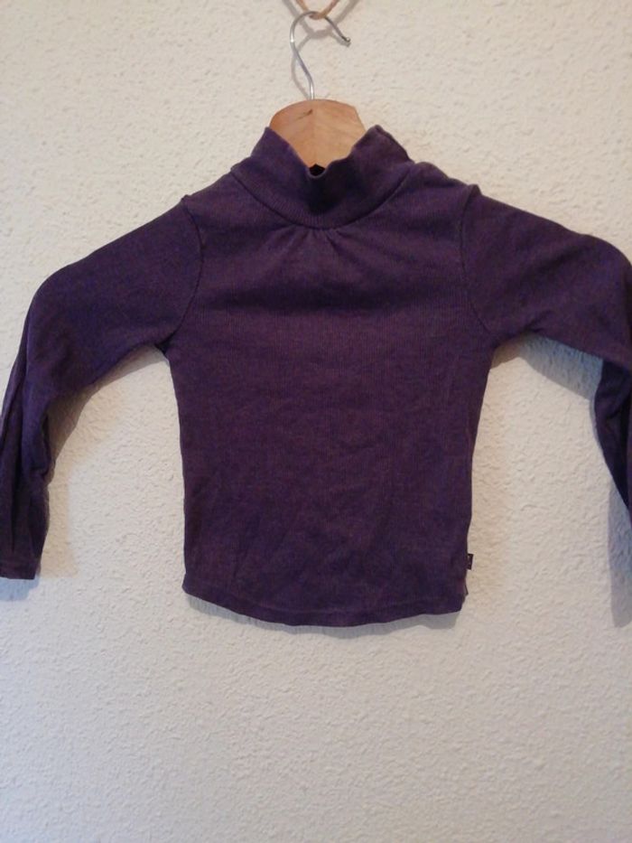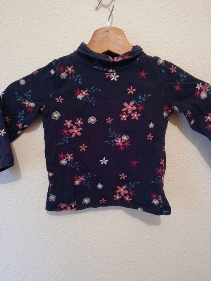Lot de 2 tee-shirts à manches longues et col roulé. Un violet côtelé, okaidi Un bleu marine motif fleuri, in extenso Taille 98 cm (3ans) En parfait état.
