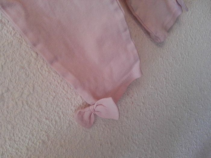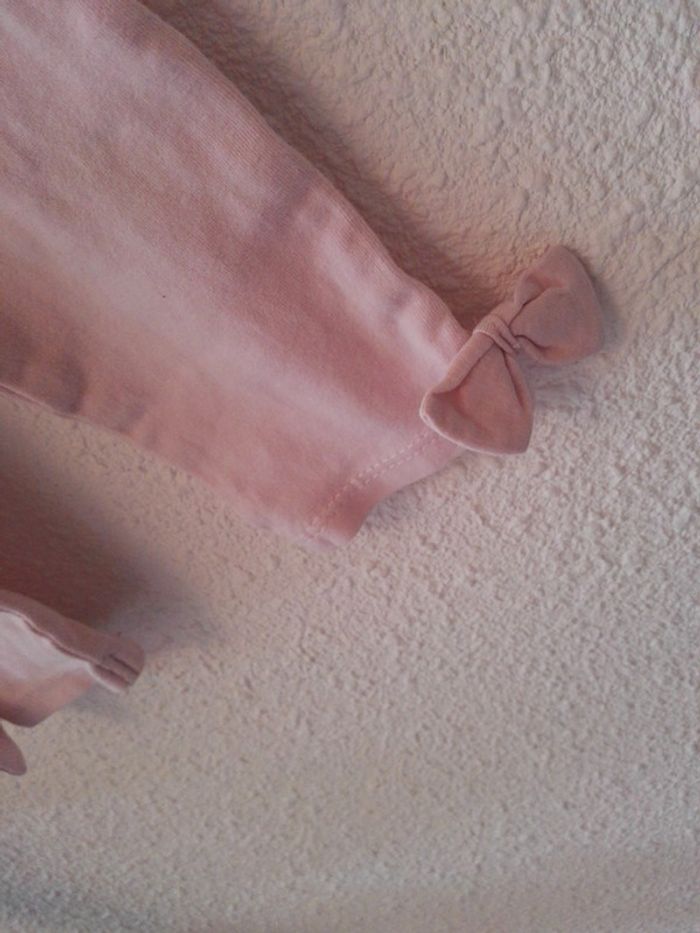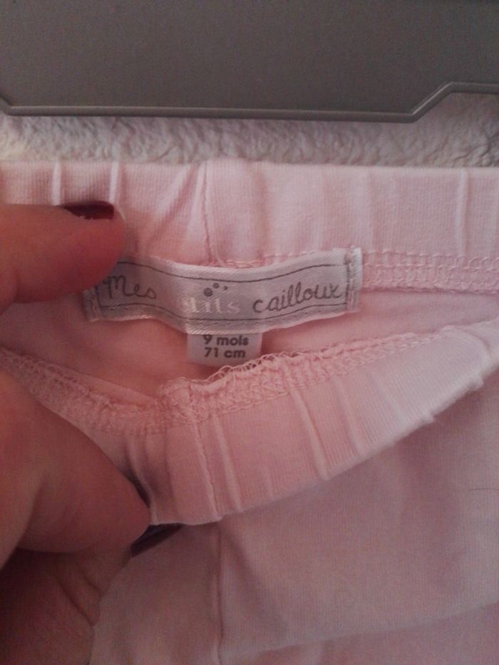 Legging 3/4 rose pâle avec un petit noeud sur chaque jambe. Très bon état. Taille 9 mois. N'hésitez pas à créer des lots, jusqu'à 30% de réduction