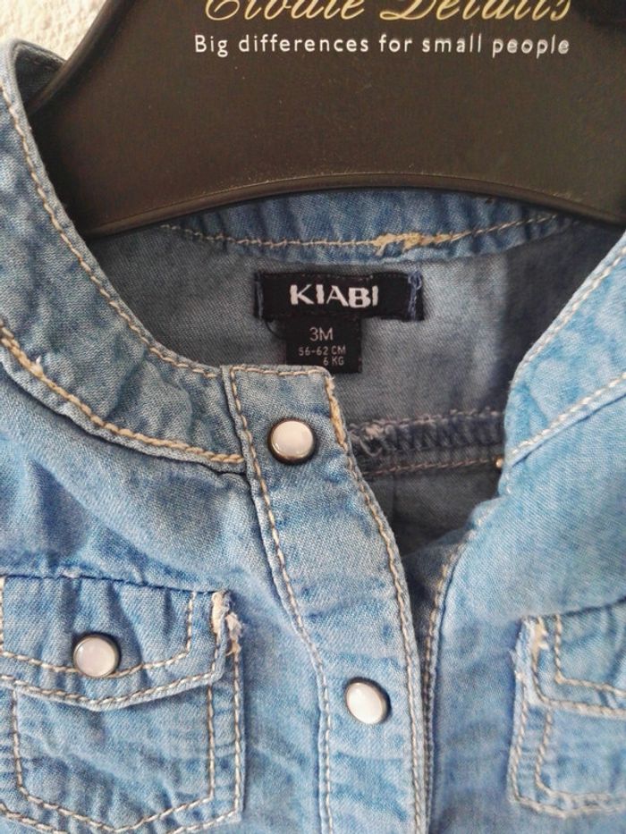 Robe en denim kiabi. Fermeture par pression sur l'avant. Taille 3 mois. Très bon état. N'hésitez pas à créer des lots, jusqu'à 40% de réduction